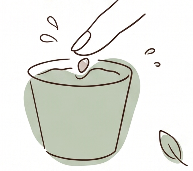 一晩水につけて、種まきの準備。指先でひと押し、やさしく土へ。芽が出るまでは、毎朝「おはよう」の水やりを。