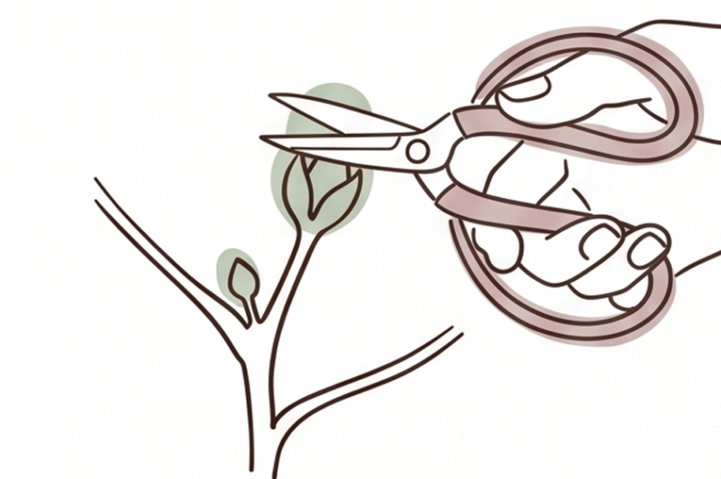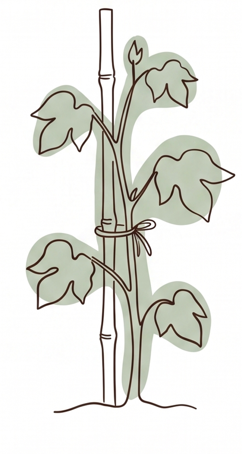 てっぺんを摘む、魔法のひと手間。枝を横に広げて、花と綿をたくさん実らせましょう。