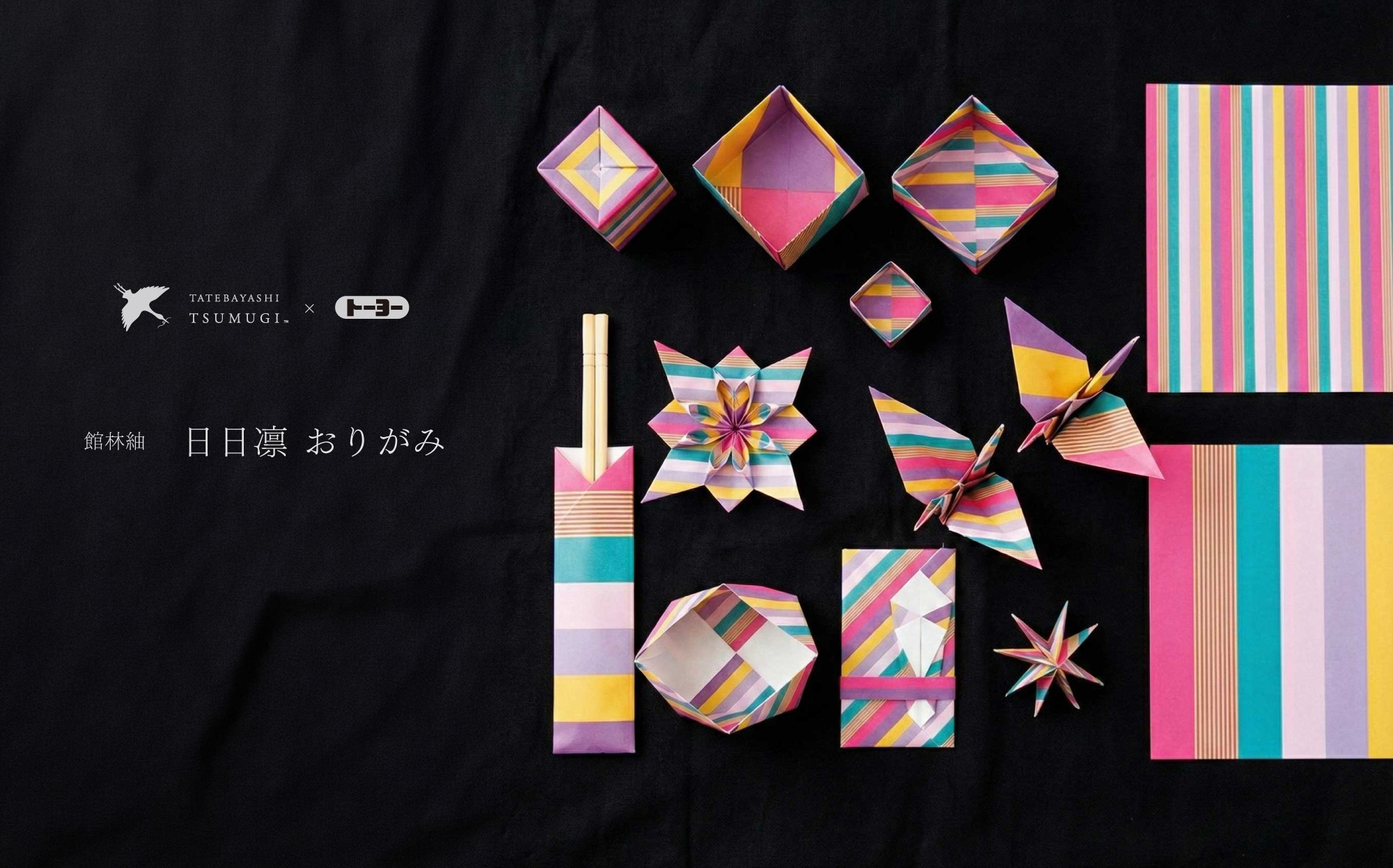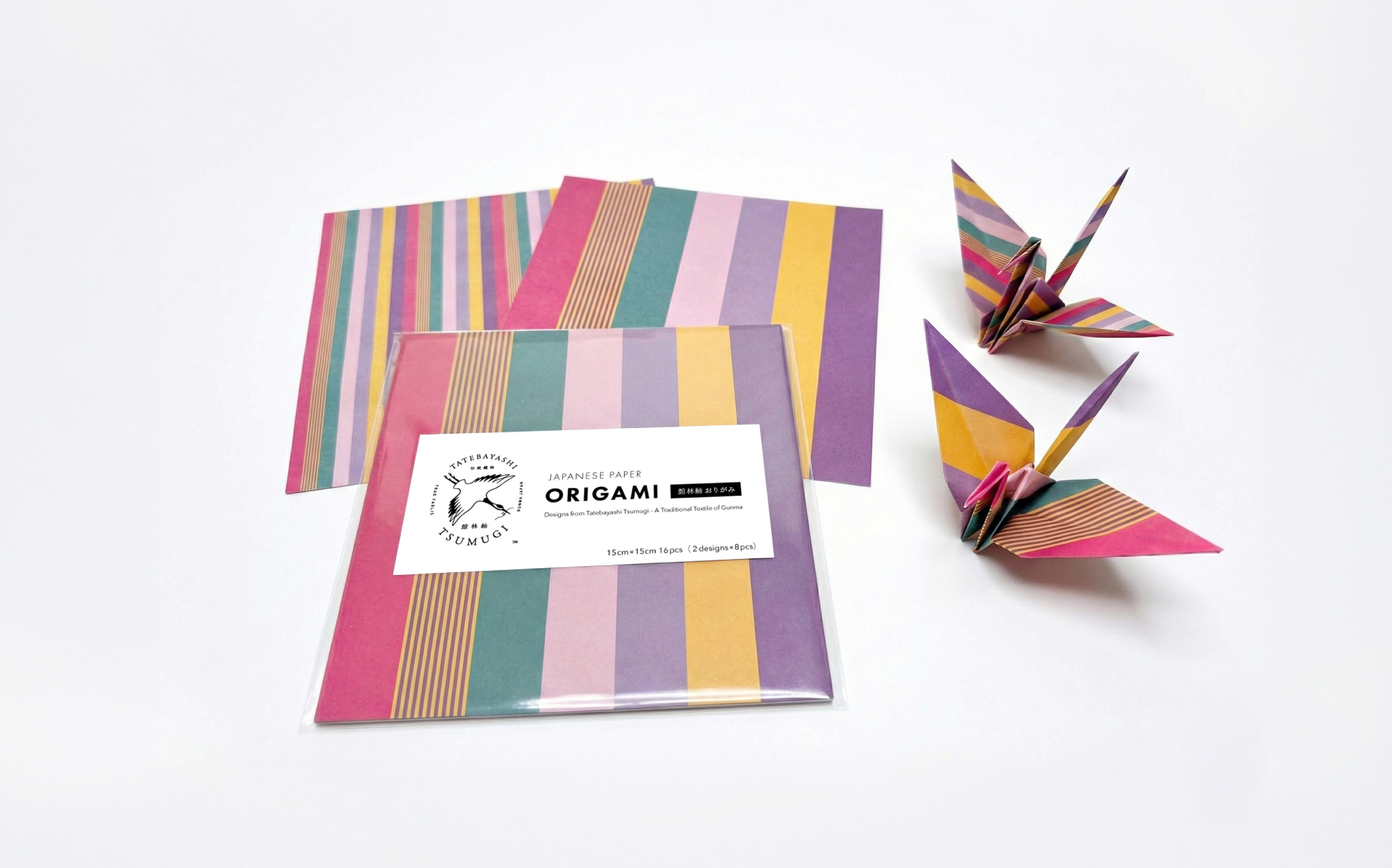 館林紬のシンボル「日日凛」カラーを鮮やかに再現した「折り紙」ができました。